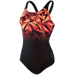 Maak een statement met de Boom logo-opdruk. Het sportieve Hyperboom muscleback zwempak is een eerbetoon aan het merk Speedo, met het iconische Boom-logo in een gegradueerde versie van de ‘verbrijzelde’ print met gedurfde rode en zwarte tinten.
