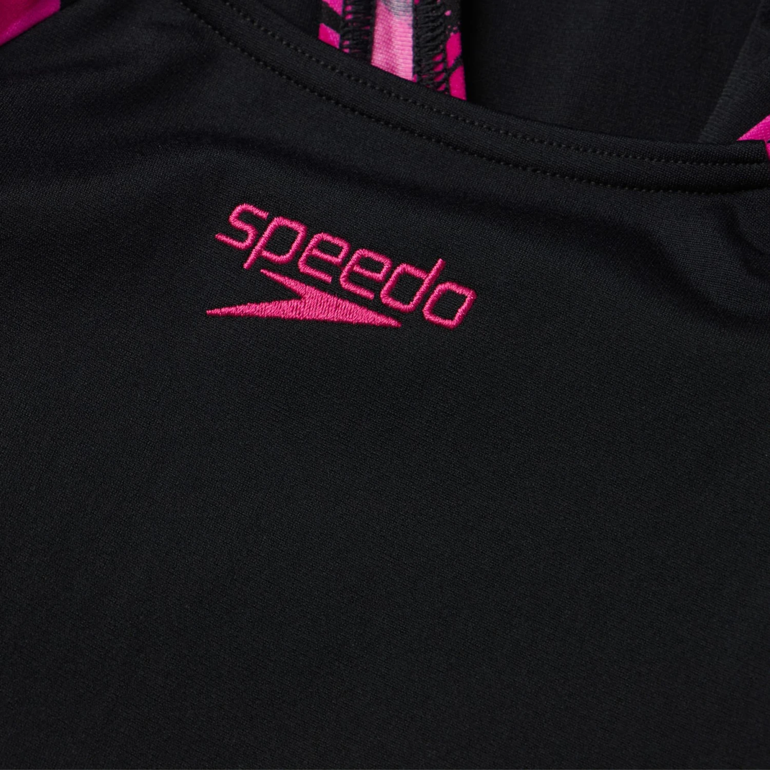 Maak een statement met de Boom logo-opdruk. Een eerbetoon aan het merk Speedo, dit sportieve benenpak heeft flatterende gevormde zijpanelen met de ‘broken’ Boom logo-opdruk in intense tinten roze en zwart.