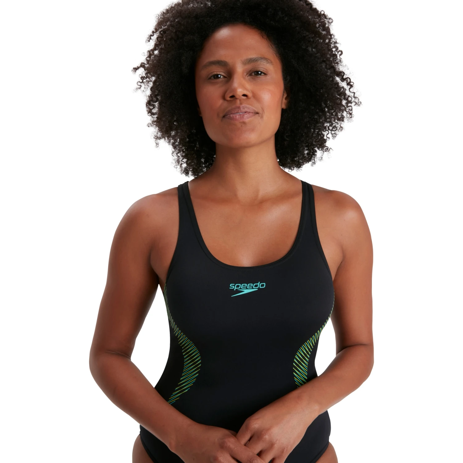 Het muscleback ontwerp met zijn middelhoge voorkant en beenuitsnijding is perfect voor regelmatige bezoeken aan het zwembad.