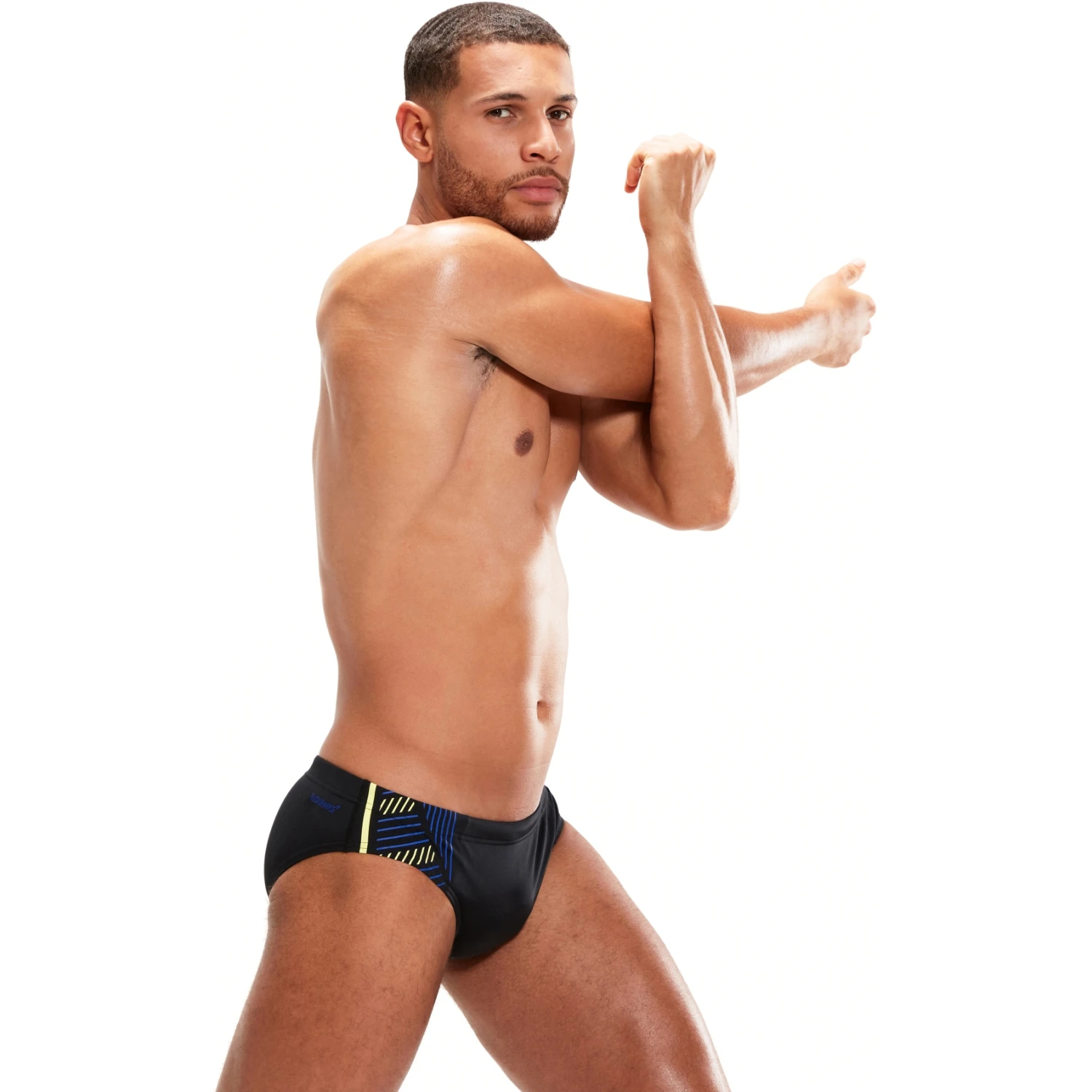 Laat je tijdens de training van je beste kant zien met de Tech 7cm Brief, met een subtiele geometrische plastisolprint in blauw en geel. De korte stijl biedt veel bewegingsvrijheid en heeft een trekkoord in de taille voor een verstelbare pasvorm, zodat u comfortabel en zelfverzekerd in het zwembad blijft.