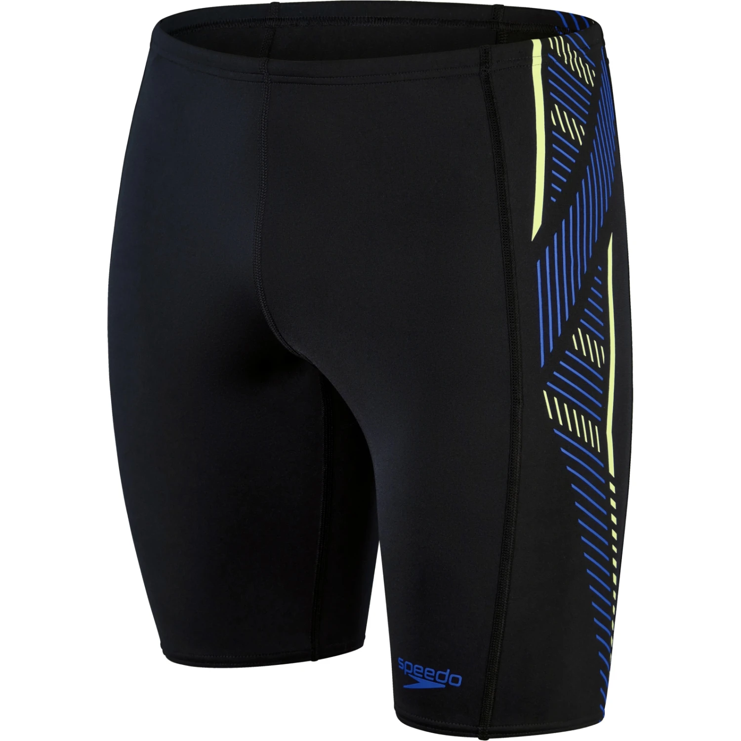 Laat je tijdens de training van je beste kant zien met de zwarte Tech Jammer, met een geometrische plastisol paneelprint in blauw en geel. Een rubberen power mesh-voering houdt u comfortabel en ondersteund tijdens het zwemmen, terwijl de taille met trekkoord een verstelbare pasvorm biedt.