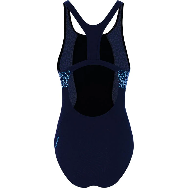 Dit navy zwempak viert het beroemde Speedo logo met zijpanelen die de nieuwe Boomstar print in blauw laten zien. De nieuwe Flyback heeft smalle racerbackbandjes en een subtiele rugopening – een moderne kijk op Speedo’s originele silhouet. De plaatsing van de banden geeft uw schouderbladen maximale bewegingsvrijheid. Het 100% chloorbestendige Endurance®+ materiaal garandeert dat uw zwemkleding langer als nieuw blijft.